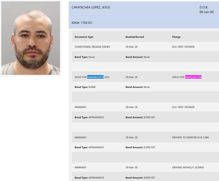 26-year-old Jesus Caratechea Lopez – arrested March 29