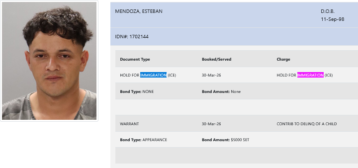 - Mendoza was charged with contributing to the delinquency of a minor. He was booked on a $5000 bond.