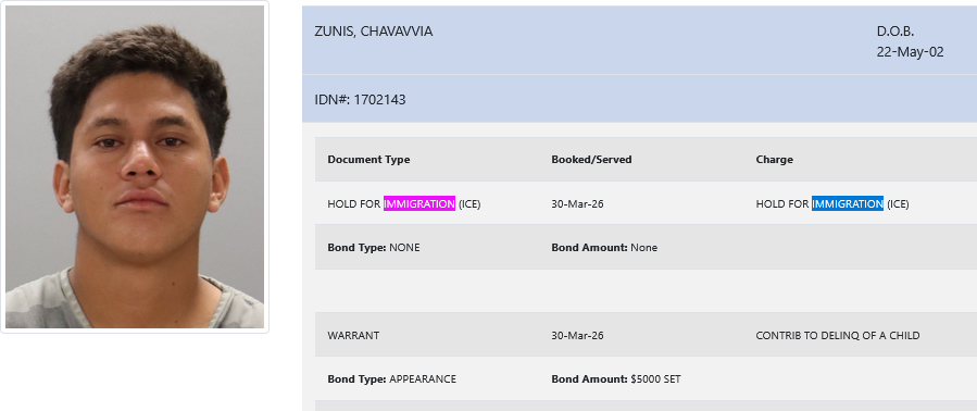 • Zunis was charged with contributing to the delinquency of a child. He was booked on a $5000 bond.