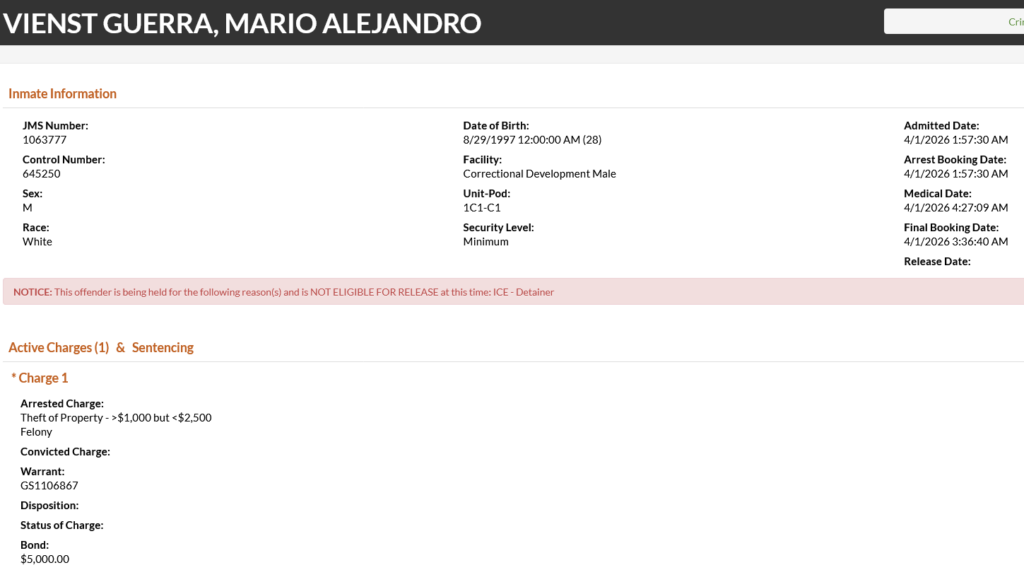 28-year-old Mario Alejandro Vienst Guerra – arrested April 1
