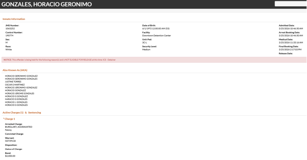 53-year-old Horacio Geronimo Gonzales – arrested March 25