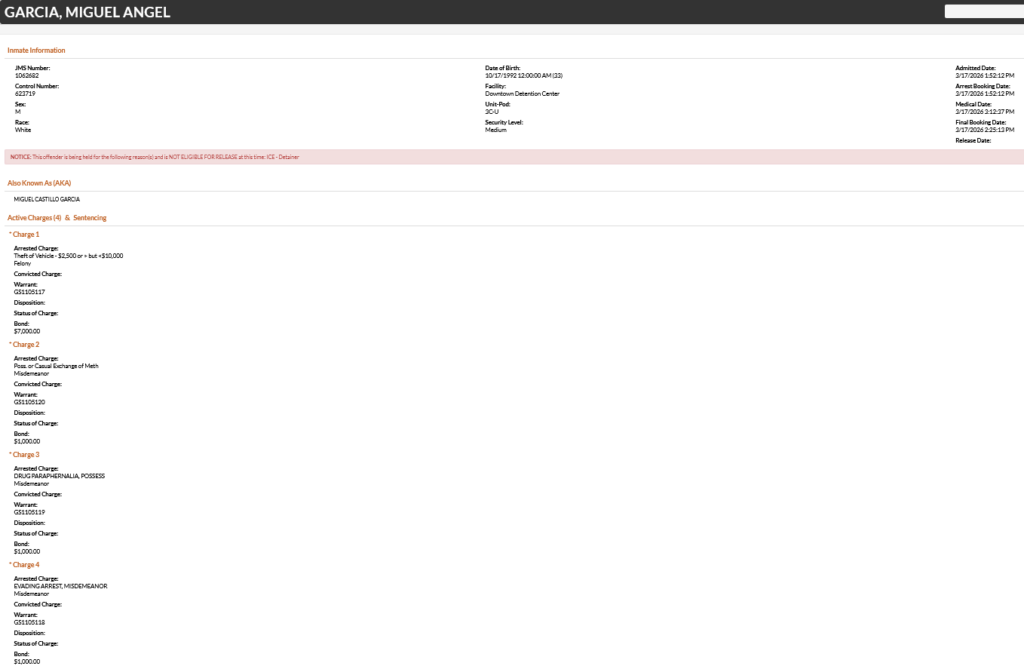 33-year-old Miguel Angel Garcia – arrested March 17