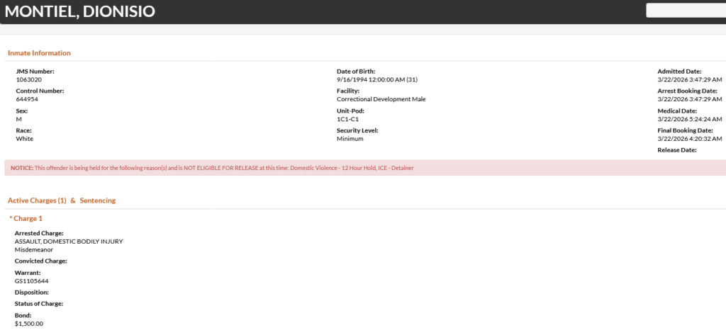 31-year-old Dionisio Montiel – arrested March 22