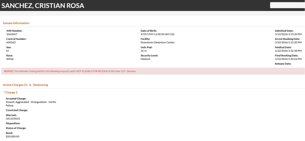 32-year-old Cristian Rosa Sanchez – arrested March 22