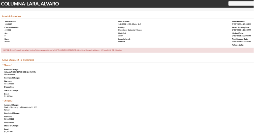 24-year-old Alvaro Columna-Lara – arrested March 23