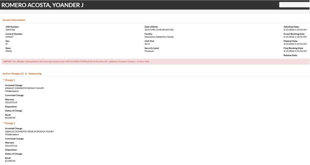 33-year-old Yoander J. Romero Acosta – arrested April 15