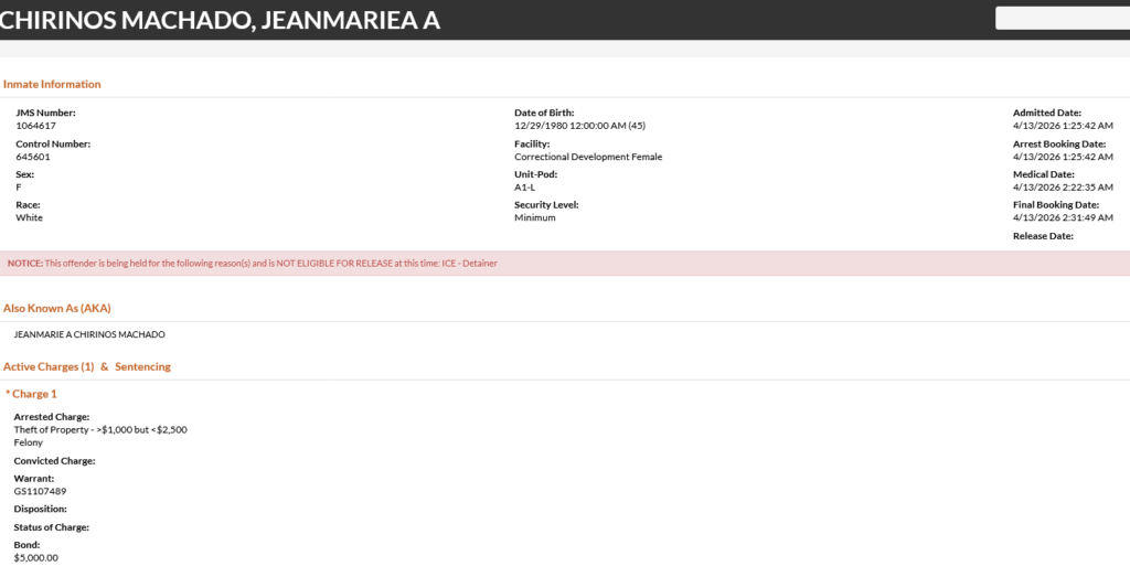 45-year-old Jeanmariea A. Chirinos Machado – arrested April 13