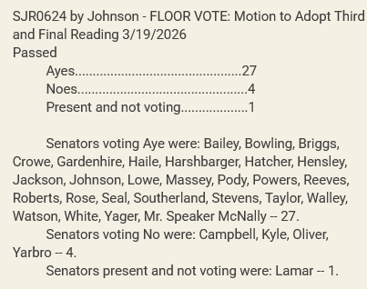 The resolution had its final vote on the Senate floor on Thursday, where it was read in its entirety to the body for the third time before discussion was entertained.