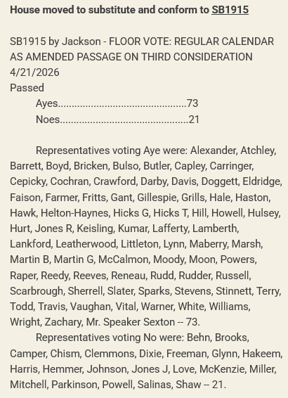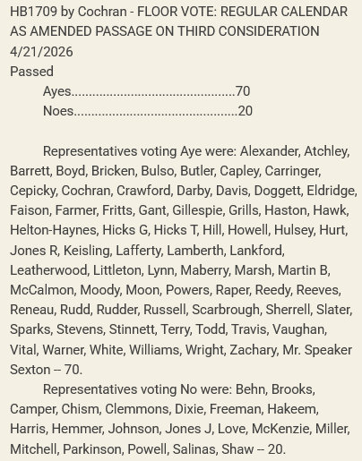 After adopting the Senate version, HB1710 was passed 73-21 along party lines, and as companion bill SB1915 passed last week, this bill will also officially become law after receiving the Governor’s signature.