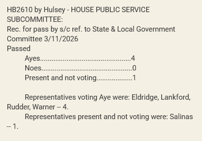 The legislation now moves on to the House State and Local Government Committee where it is scheduled to be heard on Wednesday, March 18th, 2026.
